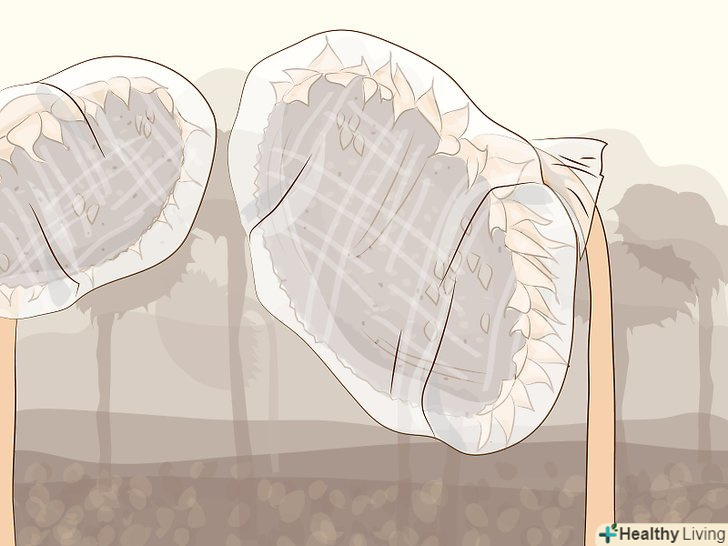 Захистіть насіння від птахів за допомогою марлі. оберніть головки соняшників марлею або навіть паперовими пакетами і перев'яжіть їх знизу мотузкою. Тим самим ви захистите квіти від птахів і білок, і насіння не впадуть на землю. [15]- Перш ніж перев'язувати квіти, почекайте, поки вони не почнуть висихати і хилитися до землі.
