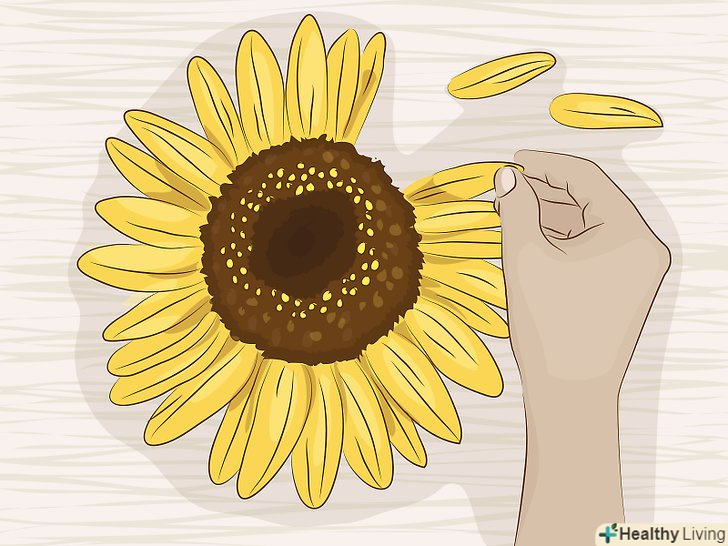 Зберіть пелюстки. виберіть Соняшник з красивими непошкодженими пелюстками і пальцями вирвіть їх один за іншим. Постарайтеся при цьому не пошкодити пелюстки.