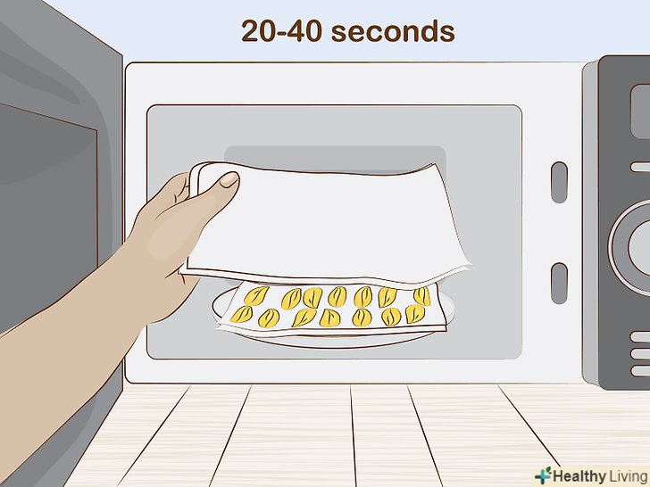 Висушіть пелюстки в мікрохвильовій печі. Візьміть тарілку для мікрохвильової печі і постеліть на неї два паперових рушники. Розкладіть зверху пелюстки в один шар і накрийте їх ще двома чистими паперовими рушниками. Розігрівайте пелюстки в мікрохвильовій печі в інтенсивному режимі протягом 20-40 секунд або до тих пір, поки вони не висохнуть. [21]- При розігріві в мікрохвильовій печі паперові рушники вберуть виділену пелюстками вологу.