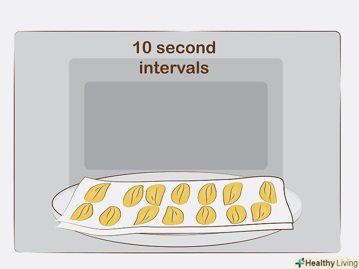 Через перші 20 секунд перевірте пелюстки. якщо вони все ще вологі на дотик, продовжуйте розігрівати їх короткими інтервалами по 10 секунд, поки вони не висохнуть. При цьому стежте, щоб пелюстки не стали крихкими. [22]