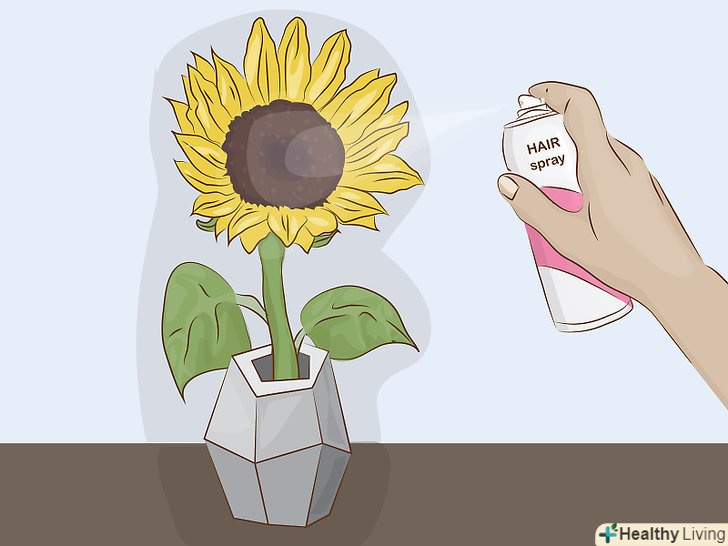 Нанесіть на Соняшники лак для волосся. квіти краще збережуть свою форму і колір, якщо обприскати їх лаком для волосся. Після цього поставте Соняшники в вазу або коротко обріжте стовбури і помістіть квіти в засклені рамки. [6]