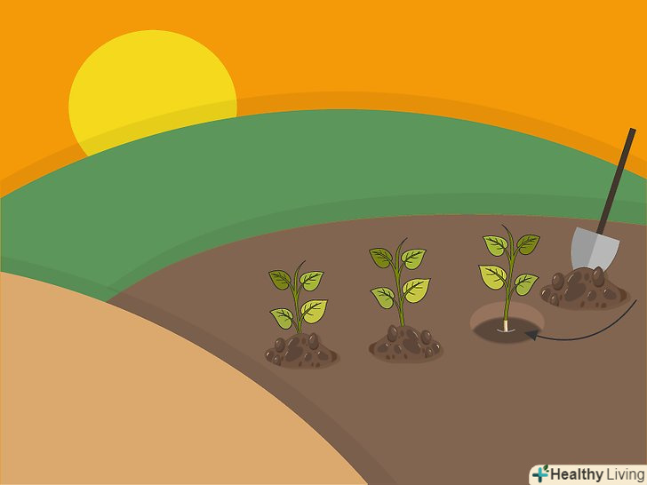Посадіть рослину. знайдіть сонячне місце в саду, яке отримує хоча б 6-8 годин сонячного світла, і виройте досить велику яму, щоб в ній можна було посадити саджанець або рослина. Садовими вилами викопайте трохи землі біля основи ямки і додайте в неї трохи компосту. Акуратно вставте рослину в яму і засипте коріння рівною кількістю землі і компосту. [12]- Садіть Чилі хоча б в 45 см від інших рослин, щоб у нього було достатньо місця для зростання.
