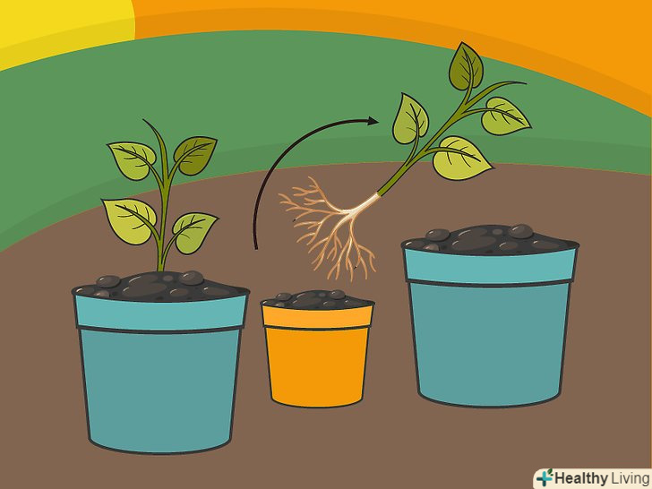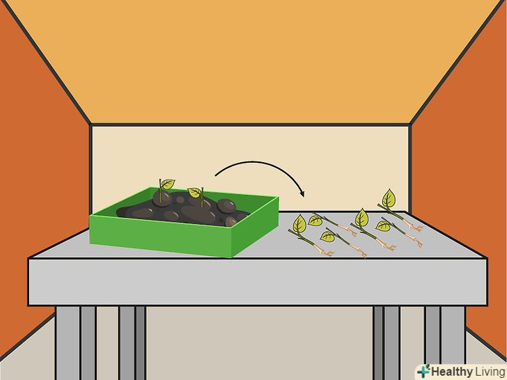 Дістаньте розсаду з лотка. коли саджанці досягнуть висоти в 5 см і на них з'явиться по 5-6 листків, пересадите їх в місце побільше, щоб їх коріння не здавлювалися. Акуратно підніміть їх з лотка і постарайтеся якомога менше торкатися коренів. [8]- Полийте саджанці перед пересадкою, щоб компост не розсипався при перенесенні.
