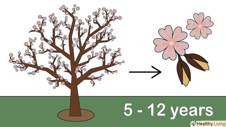 Зачекайте 5 років до отримання врожаю. мигдальним деревам необхідно якийсь час до початку плодоношення. Зазвичай цей період очікування триває близько 5 років. Однак в залежності від виду дерева цей період може тривати і 12 років, поки воно не досягне повної здатності виробляти горіхи. Будьте терплячі-зріле, здорове дерево може давати понад 18 кг горіхів за один урожай!- Якщо Мигдальне дерево вже почало приносити плоди, воно буде робити це щорічно протягом 50 років, гарантуючи достаток плодів в майбутні роки.