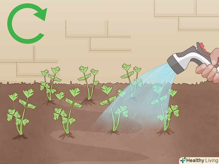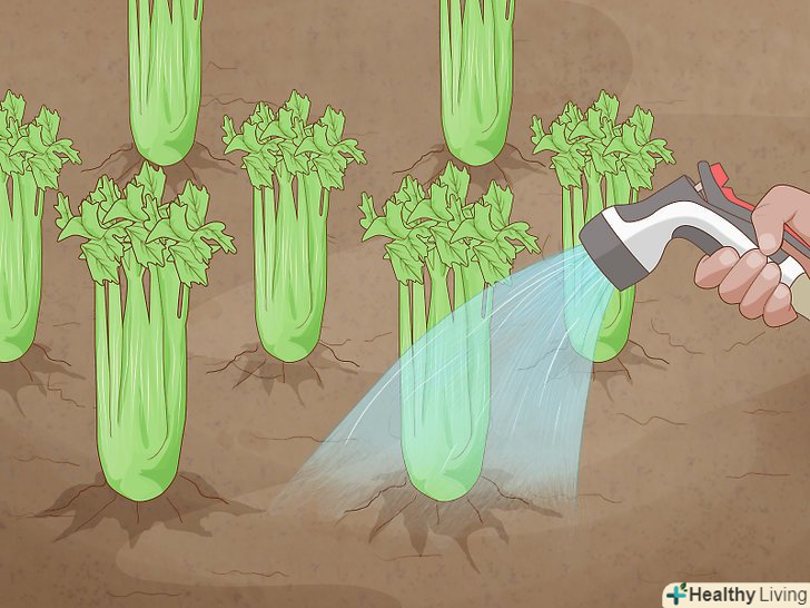 Дуже ретельно полийте засаджену територію. селера вимагає постійної вологості, так що не дозволяйте грунті висихати. Якщо селера не отримає достатньої кількості води, стебла будуть тягучі і гіркі. Обов'язково поливайте кілька разів на тиждень і збільште частоту поливу під час особливо жарких або посушливих періодів.