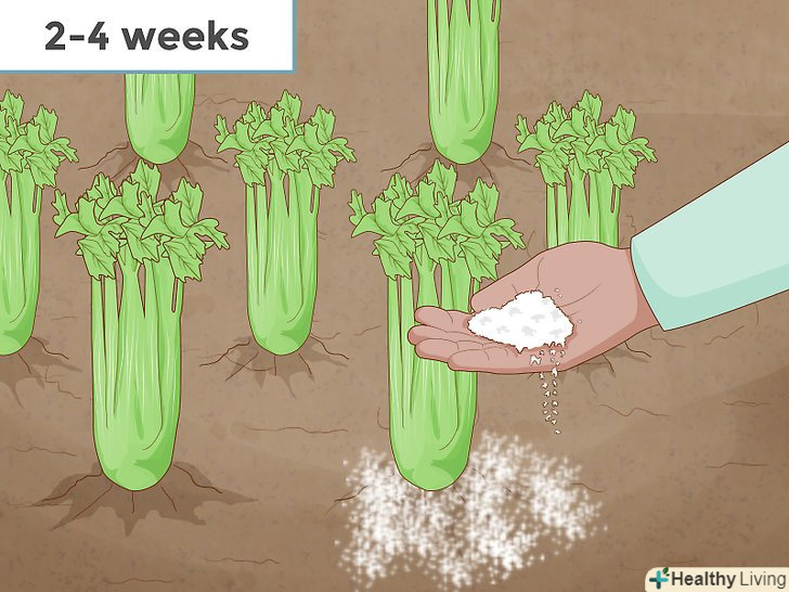Удобрюйте кожні два-чотири тижні. селера споживає багато речовин, тому вимагає багату грунт, яка повинна часто удобрюватися. Щоб рослини селери добре росли, удобрюйте добривами, збагаченими азотом, кожні кілька тижнів від посадки до збору врожаю.