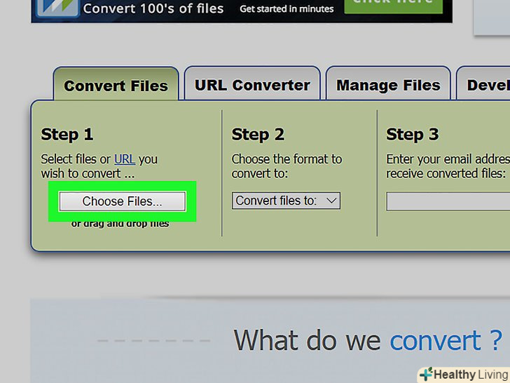 НатиснітьChoose Files (вибрати файли). ця кнопка знаходиться в розділі «Step 1» (Крок 1) посередині сторінки. Відкриється вікно Провідника (Windows) або Finder (Mac).