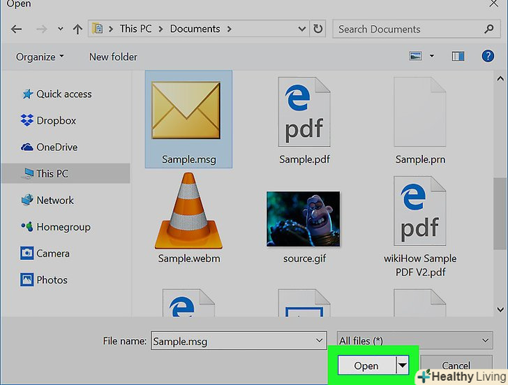 Виберіть файл MSG. перейдіть в папку з файлом MSG, а потім клацніть по ньому.