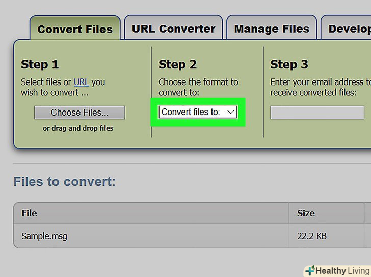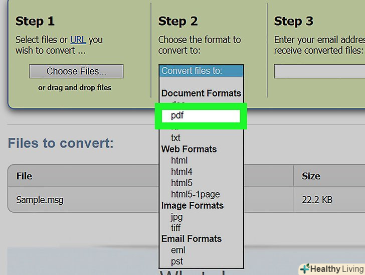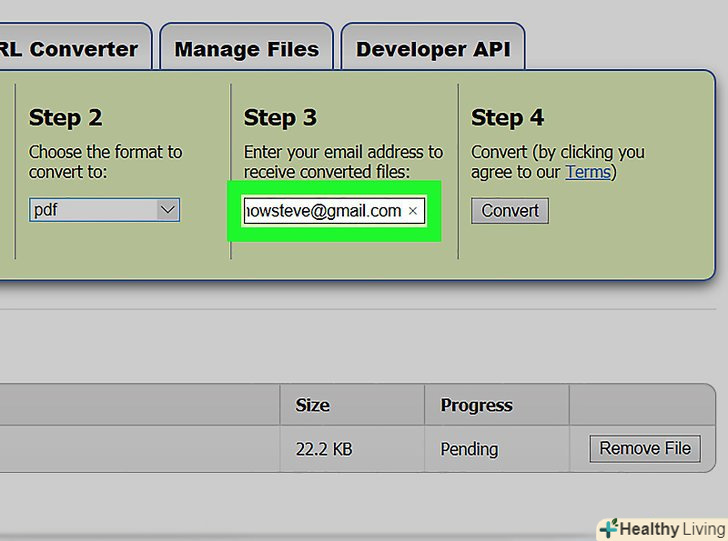 Запам'ятайте, коли краще використовувати Zamzar. скористайтеся цим сервісом, якщо хочете завантажити PDF-версію електронних листів разом з вкладеннями (якщо їх розмір не перевищує 20 МБ).- Zamzar буде потрібно вашу адресу електронної пошти, на який буде відправлена посилання для завантаження електронних листів і вкладень. Якщо ви не хочете вказувати свою адресу електронної пошти, скористайтеся сервісом Encryptomatic .