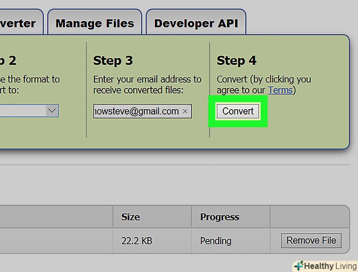 Клацніть поConvert (конвертувати). це сіра кнопка в розділі «Step 4 "(Крок 4). Zamzar приступить до перетворення файлу MSG в формат PDF.