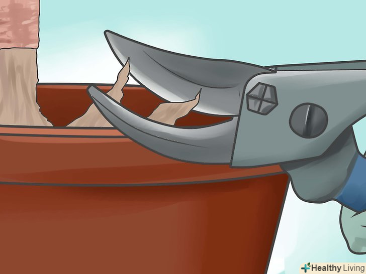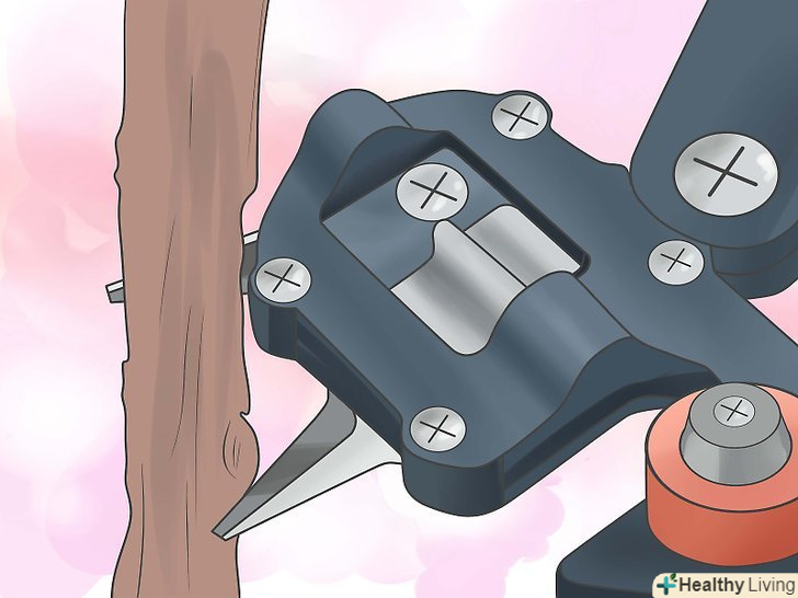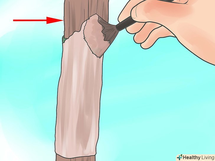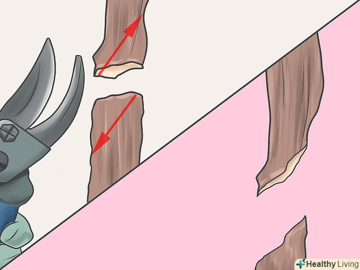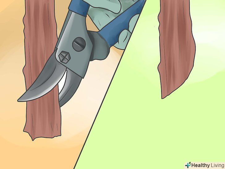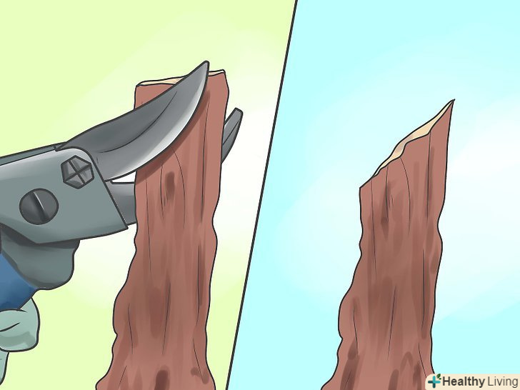 Защипніть нижню частину прищепи, щоб гілка не омертвіла. використовуйте чисті, гострі ножиці. Вам необхідно оголити свіжі зелені камбії на прищепі та підщепі, щоб забезпечити хороше щеплення.