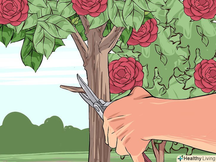 Можна надати кущах бажану форму. для початку обріжте занадто довгі і виступаючі гілки, які псують загальний вигляд. Потім надайте кущу відповідну форму. Слідкуйте за тим, щоб кущі гармоніювали із загальним ландшафтом. При цьому може знадобитися як незначна, так і більш істотна обрізка, в залежності від того, яку форму ви збираєтеся надати кущах і наскільки довго вони росли вільно.- При значній обрізку видаляється від однієї третини до половини всіх гілок. Це не повинно погубити рослина, так як камелії зазвичай досить сильні і здатні пережити подібну процедуру. Проте, на наступний рік кущ, швидше за все, дасть менше квітів, оскільки його сили підуть головним чином на відрощування нових гілок і листя. [16]