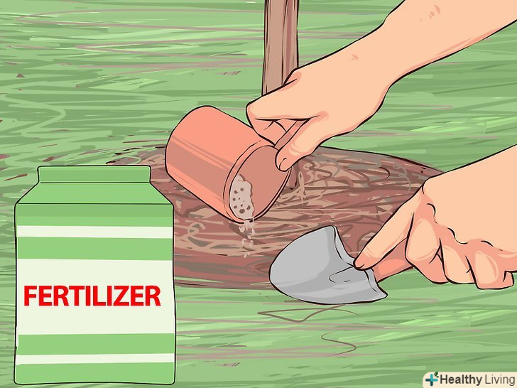 Посадіть камелії. виройте в грунті ямку приблизно на 50 сантиметрів ширше, ніж клубок коренів куща. Ямка повинна бути трохи глибше, ніж клубок коренів в центрі, і на кілька сантиметрів глибше нього по краях. Ямка не повинна бути занадто глибокою в центрі, інакше рослина може просісти. [3] більш глибокі краї ямки забезпечать достатній простір коріння, і вони зможуть легко поширитися в навколишнє грунт.- Помістіть клубок коренів в ямку і переконайтеся в тому, що його вершина злегка виступає над рівнем грунту. Після цього засипте ямку сумішшю поверхневого шару грунту і органічного добрива.
