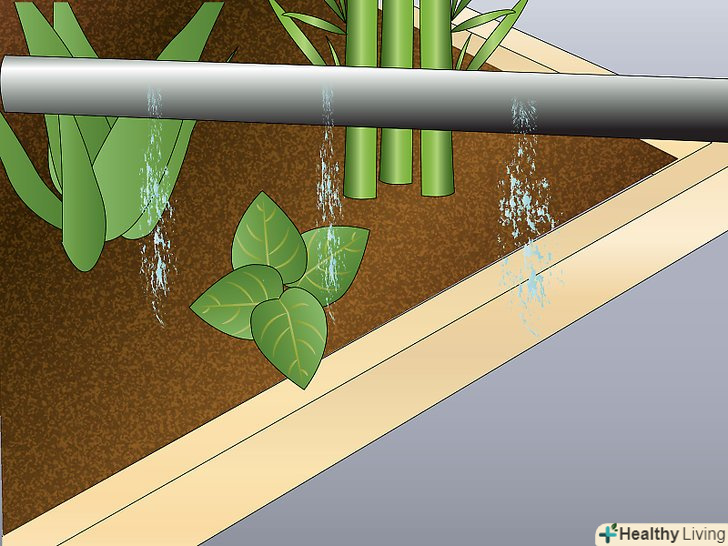 Створіть маловідходну систему поливу.- Крапельне зрошення за допомогою гумового шланга з невеликими проколотими отворами, покладеного уздовж грядки, - хороший спосіб доставити воду безпосередньо в грунт і уникнути зайвого випаровування. Поливайте тільки в разі необхідності і не забудьте змінити кількість води в залежності від потреб різних рослин.