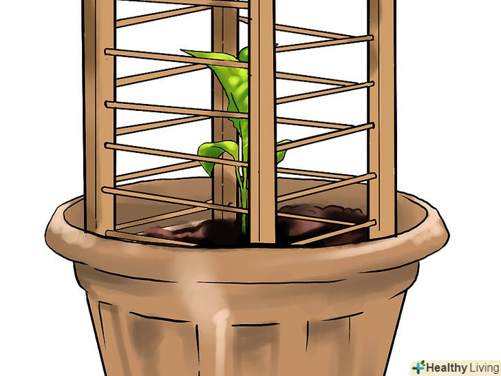 Купуйте невелику систему підтримки. без будь-якої підтримки ваші баклажани будуть дуже погано рости вгору і, як наслідок, вони будуть давати дуже мало плодів. Можна купити сітку для томатів або стовпчики. Цього повинно бути достатньо, щоб забезпечити рослині адекватну підтримку.