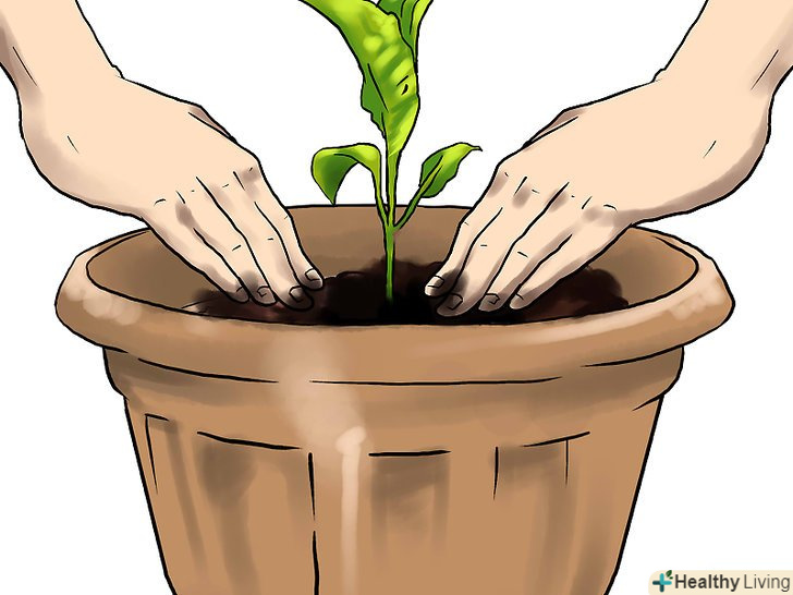 Буде потрібно додатковий наповнювач навколо саджанця, щоб утримати його на місці. не натискайте занадто сильно, так як це може привести до пошкодження кореневої системи. Ви повинні заповнити порожнє місце для того, щоб переконатися, що розсада щільно стоїть на місці.