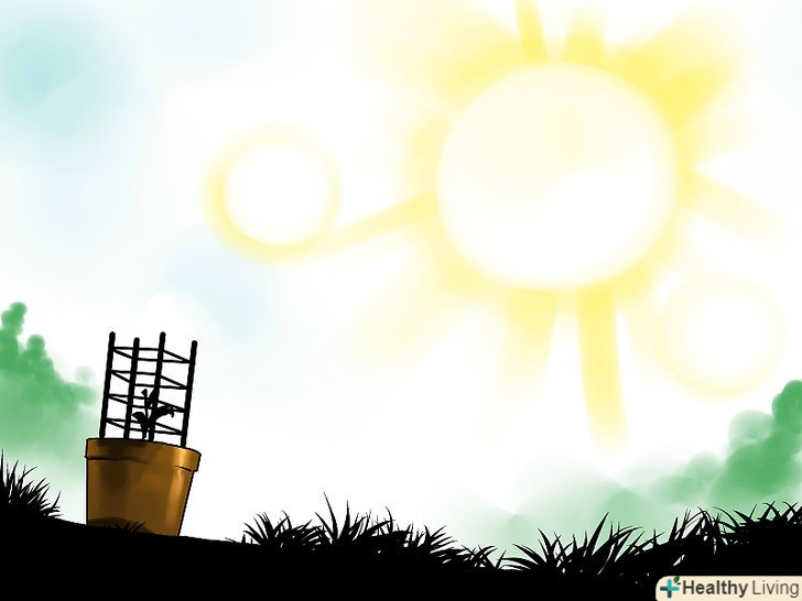 Поставте лоток у сонячне місце. місце на відкритому повітрі, яке отримує постійний доступ до сонця, підходить ідеально, так як і світло, і сонце мають важливе значення в отриманні хорошого врожаю. Баклажани добре ростуть в теплій грунті.