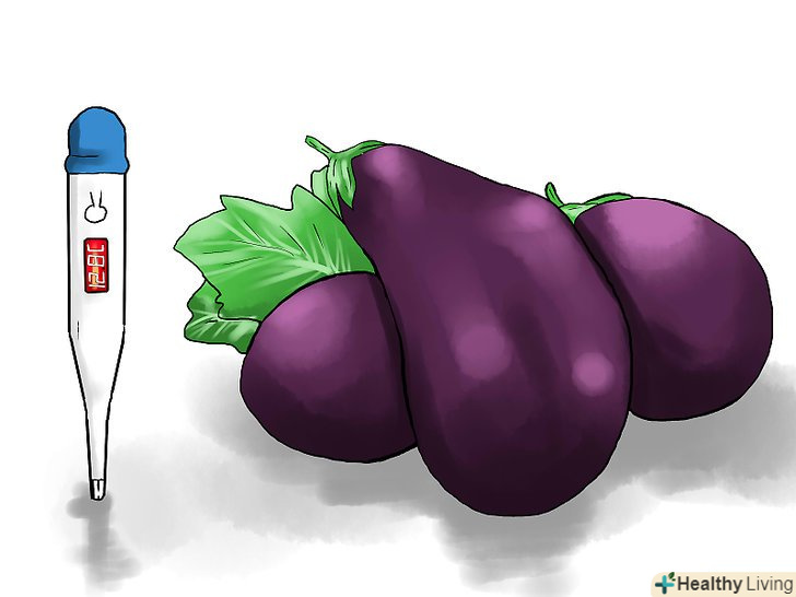 Як тільки шкірка баклажана стане глянсовою, можна збирати урожай. плоди повинні припинити рости і, у багатьох випадках, вони в цей момент досягнуть розміру великого апельсина. Час, який потрібно для дозрівання, залежить від сорту баклажанів, який ви вибрали, але баклажани, як правило, готові до збирання протягом двох-трьох місяців після початкової посадки насіння.- Відріжте баклажан від його лози, використовуючи секатор. Плід повинен мати короткий стебло.