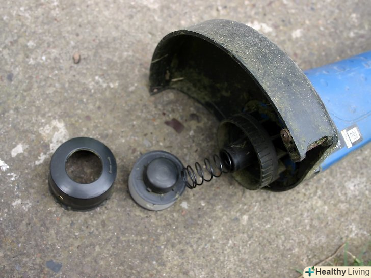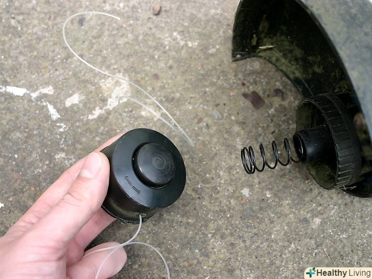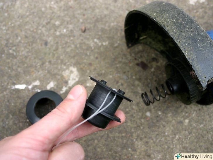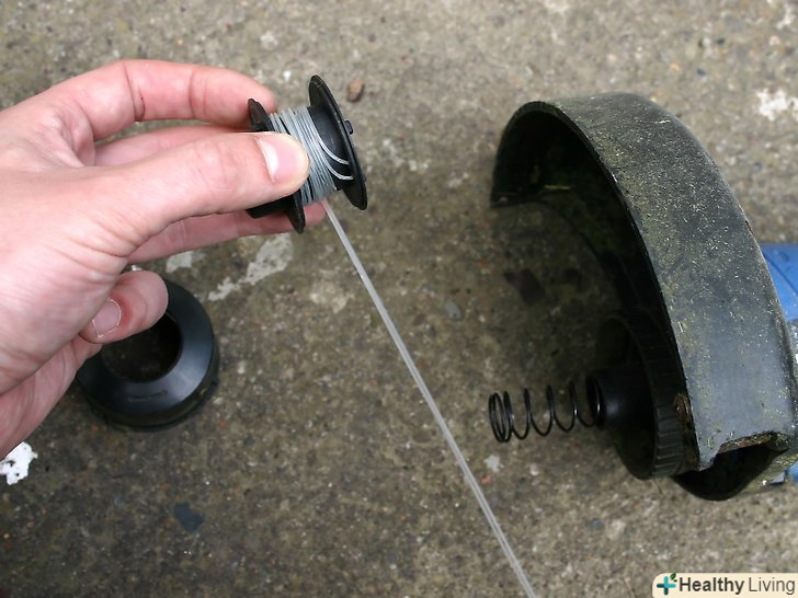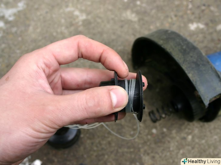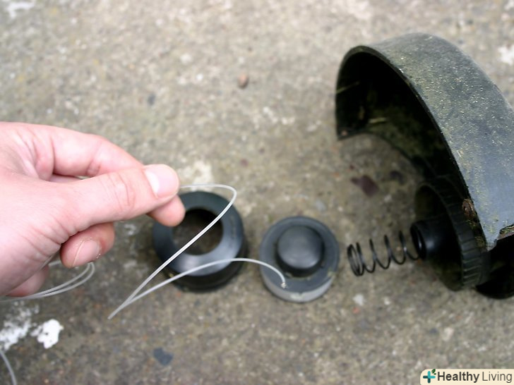 Вставте котушку назад в головку тримера. протягніть струну через отвір в голівці тримера.