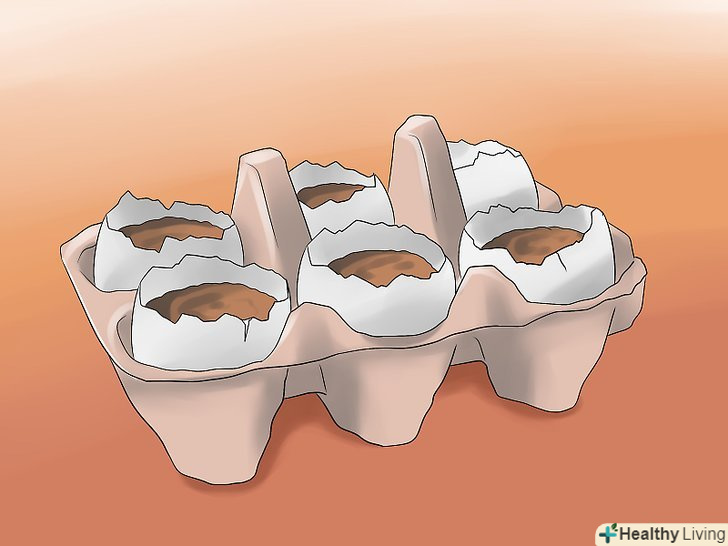 Наповніть половинки яєчної шкаралупи грунтом. (для стійкості помістіть шкаралупки в порожній картонний лоток, в якому продавалися яйця).