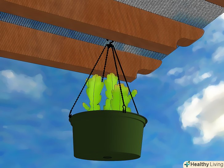 - Тінисте місце під деревом або під навісом з тканини або планки, забезпечить потрібну кількість світла. Якщо кактус росте під прямими сонячними променями, він може обгоріти. Якщо занадто багато тіні, кактус може стати надмірно товстим і не буде цвісти. Крім того, довгі стебла не будуть достатньо сильні, щоб утримати себе і можуть обвалитися і отримати пошкодження. [5]