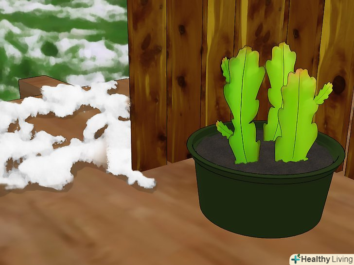 Помістіть кактус в тепле місце під час прохолодної погоди. Мороз і часта температура в районі + 4,5 градусів за Цельсієм, шкідливі для кактусів.- Прикривайте кактус ковдрою або картонною коробкою для кращого захисту. Епіфілуми також не варто залишати під градом, який може бути на досить великий, щоб зламати стебла, але на тілі рослини можуть утворитися шрами. [7]