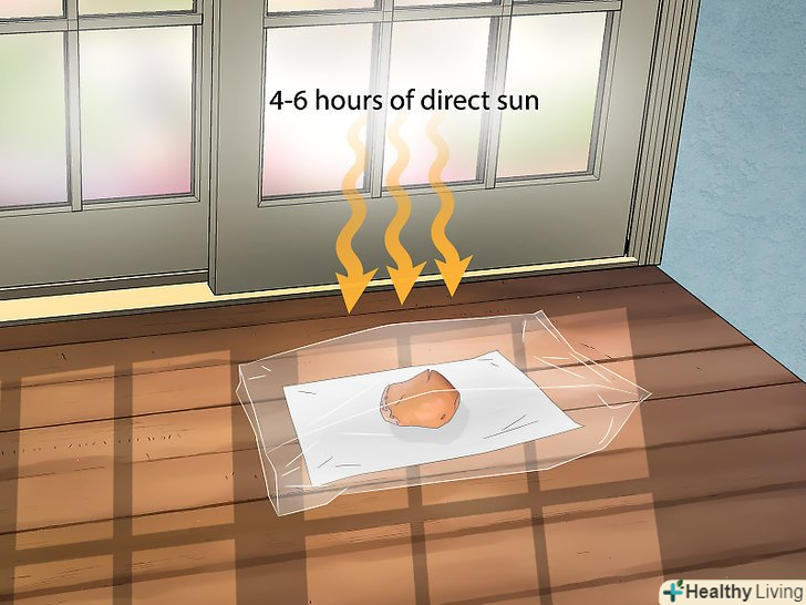 Покладіть пакет туди, де на нього протягом 4-6 годин будуть падати прямі сонячні промені. залиште пакет на підвіконні або винесіть на вулицю. Ідея полягає в тому, щоб в пакет проникло тепло і з нього випарувалася вода, що призведе до створення циклу водяної пари, який буде живити насіння. [11]- Якщо насіння не можна залишити на підвіконні або зовні будинку, спробуйте покласти їх під штучне освітлення (електричні джерела світла, розроблені спеціально для стимуляції росту рослин за рахунок випромінювання хвиль електромагнітного спектру, сприятливих для фотосинтезу).