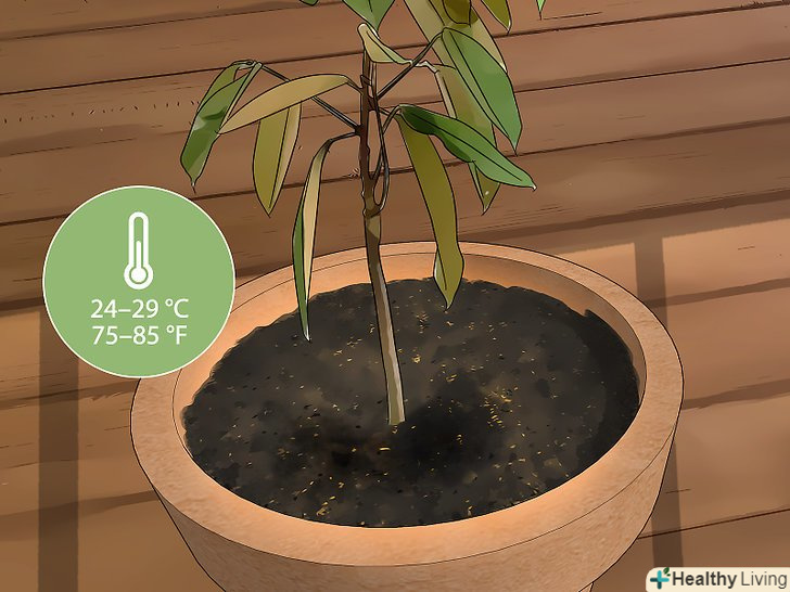 Підтримуйте температуру на рівні 24-29 °C. Дуріан зазвичай росте при температурі 24-29 °C, тому, якщо ви хочете, щоб дерево добре росло, постарайтеся відтворити ті ж умови. [15]- Не забувайте, що дуріан може зів'янути і загинути, якщо температура опуститься нижче 7 °C.