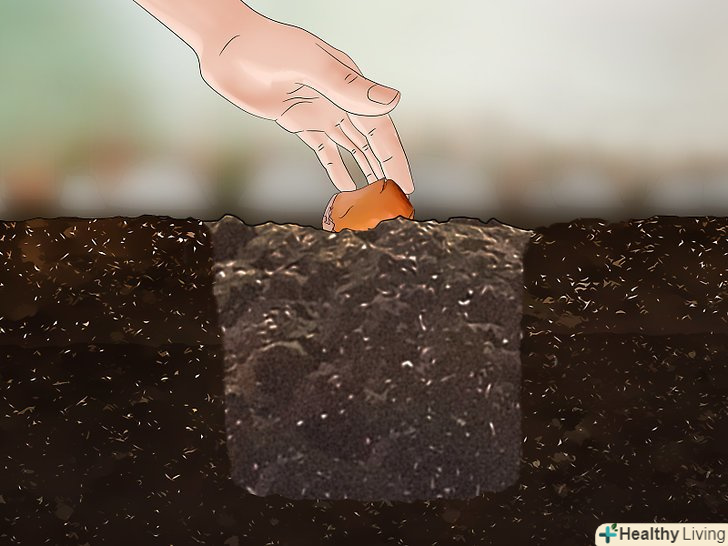 Покладіть насіння з фрукта прямо на землю. помістіть насіння на землю, але не закопуйте його. Просто втисніть його трохи пальцем, при цьому велика частина насіння все ще повинна виглядати з землі. [6]- Насіння з фрукта можна садити відразу після їх вилучення, так що їх необов'язково попередньо пророщувати.