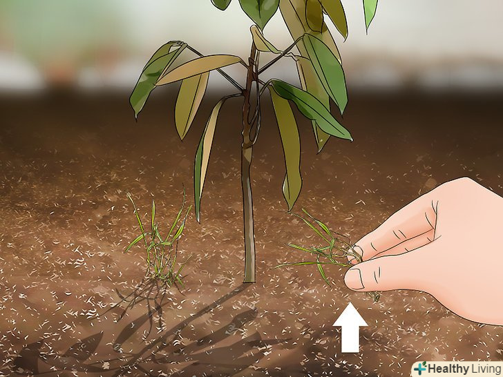 Раз на день видаляйте бур'яни біля дерева. кожен день перевіряйте, чи немає біля дерева невеликих бур'янів, оскільки вони будуть забирати у нього частину води і поживних речовин. Виривайте бур'яни вручну, так як більш інвазивними методами можна пошкодити делікатні коріння дуріана. [7]