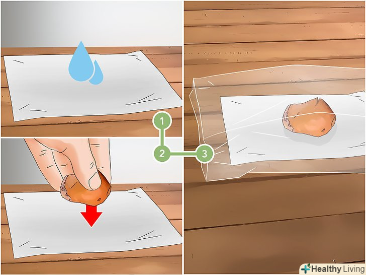 Проростіть насіння в поліетиленовому пакеті, попередньо помістивши в нього мокрий паперовий рушник. помістіть насіння в поліетиленовий пакет з мокрим паперовим рушником і закрийте його. Таким чином, в пакеті утворюється конденсат, завдяки якому насіння залишаться вологими, і ймовірність того, що вони проростуть, збільшиться. [10]