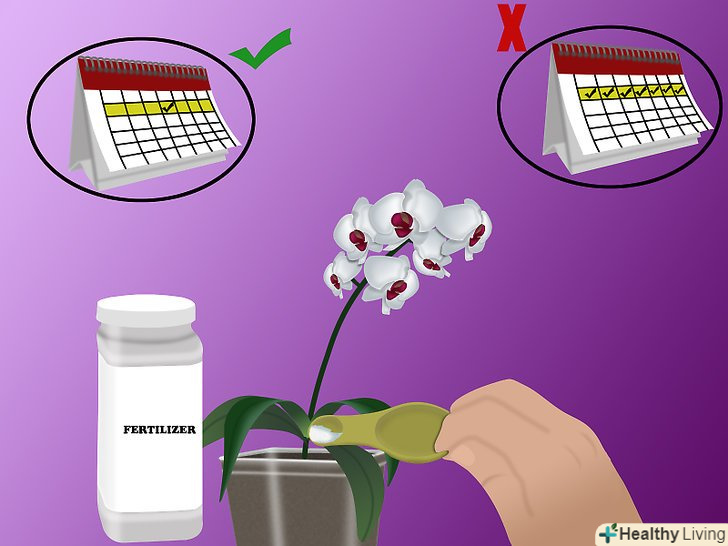 - Поливайте орхідею раз на тиждень. набагато простіше погубити орхідею, поливаючи її занадто часто, ніж занадто рідко. Поливайте рослину приблизно раз на тиждень і давайте грунту висохнути повністю між поливами. [7] у літні місяці може виникнути потреба в більш частому поливі через довгого світлового дня і сильної спеки. Лийте воду в горщик з орхідеєю протягом 15 секунд, а потім поставте його на піддон з камінчиками, щоб орхідея «пила» поступово.