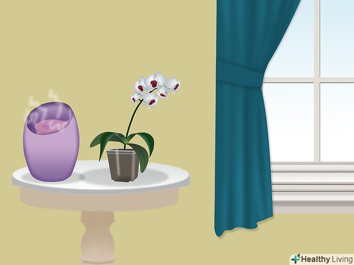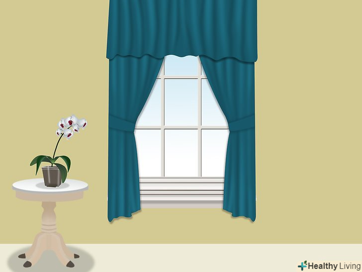 Переконайтеся, що орхідеї отримують достатньо сонячного світла, але не надто багато. багато орхідеї люблять непрямий сонячне світло: прямі сонячні промені будуть обпалювати квітки, а через нестачу світла орхідея не буде цвісти. Поставте орхідею біля вікна, що виходить на південь або схід. Якщо вікно виходить на захід, світла може виявитися занадто багато, якщо на північ — занадто мало.- Перевіряйте листя, якщо хочете дізнатися, чи достатньо світла отримує рослина. Листя орхідеї повинні бути світло-зеленими з жовтуватим відтінком. Якщо листя темно-зелені, значить, орхідея отримує недостатньо світла. Якщо листя жовті, коричневі або червонуваті, значить, вона отримує занадто багато світла. [6]