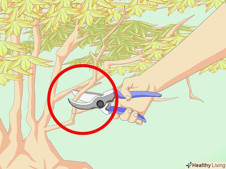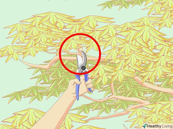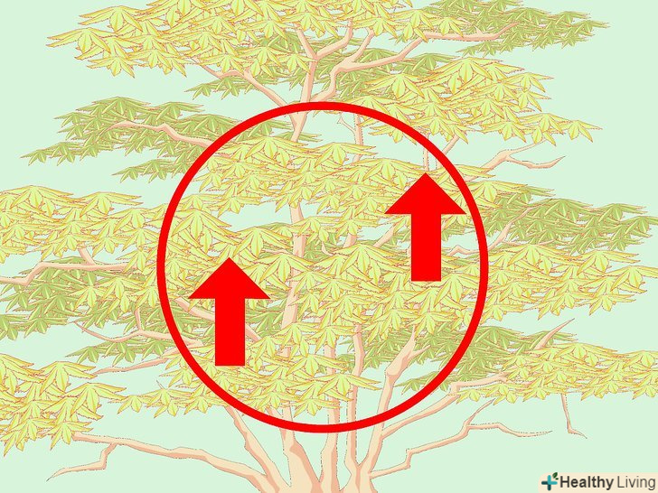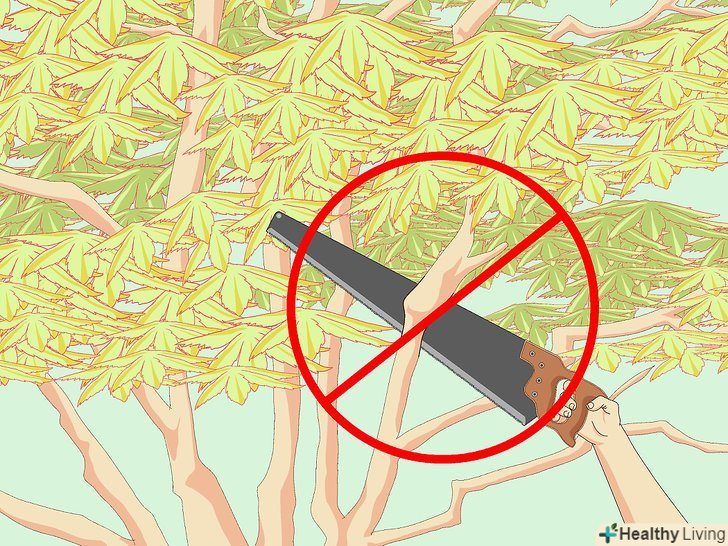 Залишайте найбільші гілки недоторканими. ніколи не видаляйте гілки з діаметром більше половини стовбура дерева. У більш старих кленах вам слід залишати гілки діаметром більше 1/4 - 1/3 стовбура дерева. [4]