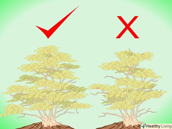 Відріжте гілки, які схрещуються або переплітаються. гілки, які знаходять один на одного, як правило, псують силует дерева. Навіть якщо це не так, в результаті вони можуть заважати один одному рости. Відріжте одну або обидві гілки, які знаходять один на одного, відпилявши їх біля основи якомога ближче до стовбура, а не в тому місці, де вони починають схрещуватися.