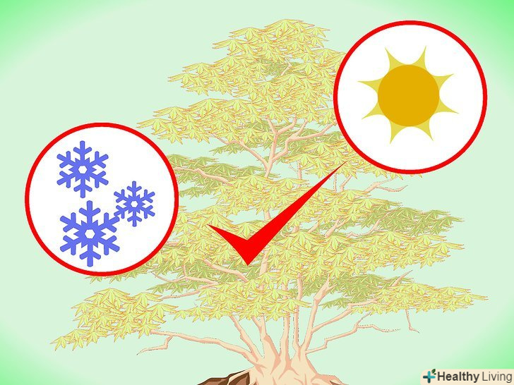 - Клен дланевідний з гілками, що ростуть вгору, в сторони і вниз, повинен мати верхній шар листя, який покриває іншу частину дерева, немов вуаль або навіс.