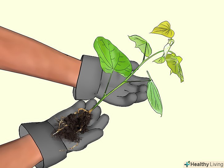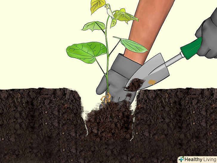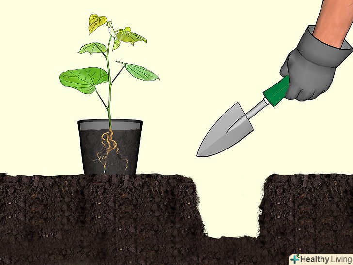 Викопайте яму, яка в чотири рази ширше кореневого кома. коріння потрібно багато місця, щоб поширитися всередині отвору. Отвір повинен бути приблизно рівним глибина до висоти коренів.