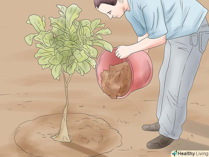Підтримуйте грунт. якщо посадили дерево у відкритий грунт, важливо підтримувати грунт, щоб дерево росло. Видаляйте будь-які бур'яни і додавайте в землю добрива кожні 4-5 тижнів. Крім того, покладіть 10-15 см мульчі навколо стовбура, рівномірно покриваючи грунтом.- Мульчування буде зберігати влітку вологу, а взимку — захищати від холоду і морозу.
