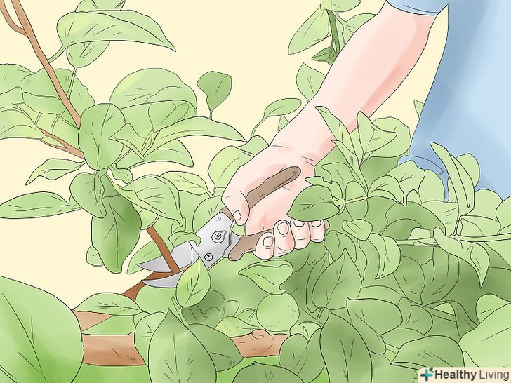 При необхідності, обріжте дерево. обрізайте дерево влітку на другий рік, так як не слід обрізати його протягом першого року зростання. Обрізайте, залишивши 4 сильні гілки, що збільшить урожай фруктів. Після того як дерево виросте, обрізайте його щовесни, перед тим як почнуть рости фрукти.