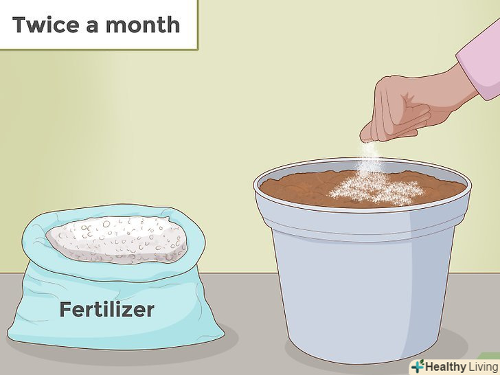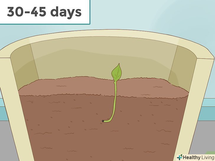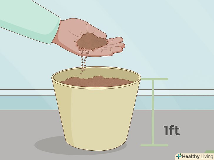Наповніть горщик суглинистой грунтом. у ній повинно бути трохи піску, щоб забезпечити поступовий дренаж. Суглинний грунт можна купити майже в будь-якому садівничому магазині. Якщо ви садите або пересаджуєте саджанці в сад, використовуйте контейнер будь-якого розміру. Якщо ви хочете посадити насіння в контейнер і вирощувати в ньому рослину до зрілості, використовуйте контейнер не менше 30 см глибиною і 15 см шириною. [2]