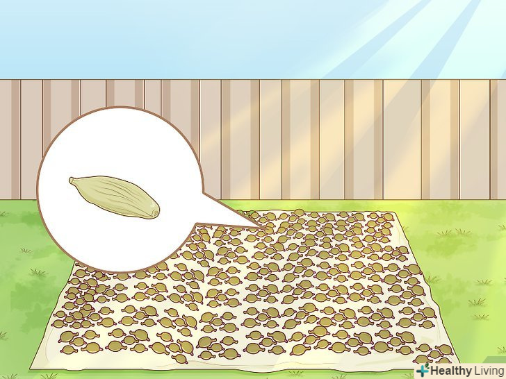 Висушіть коробочки. залежно від того, скільки коробочок ви хочете висушити, це можна зробити різними методами. Якщо їх зовсім небагато, викладіть їх одним шаром і висушіть на сонці. Кардамон, зібраний в промислових масштабах, часто висушують в дуже гарячих печах. [15]- Коли кардамон висохне, відкрийте коробочки, подрібніть насіння і використовуйте їх при приготуванні випічки або інших страв.