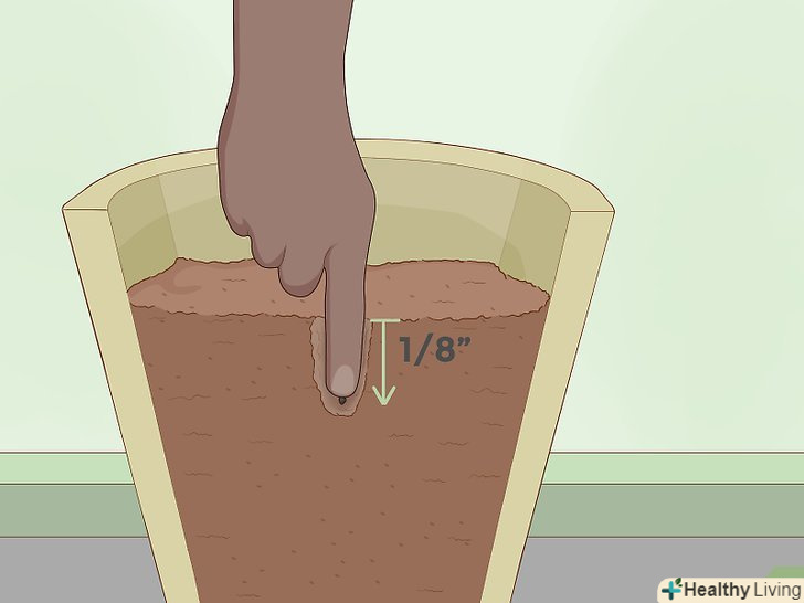 Посадіть насіння на глибину близько 3 мм. висипте кілька насіння в горщик і присипте їх грунтом на 3 мм.полийте насіння, щоб земля стала повністю вологою. [3]- Посадіть стільки насіння, скільки хочете, але розташовуйте їх приблизно в 2,5 см один від одного, щоб ви могли потім прорідити і пересадити їх, як тільки вони почнуть рости.