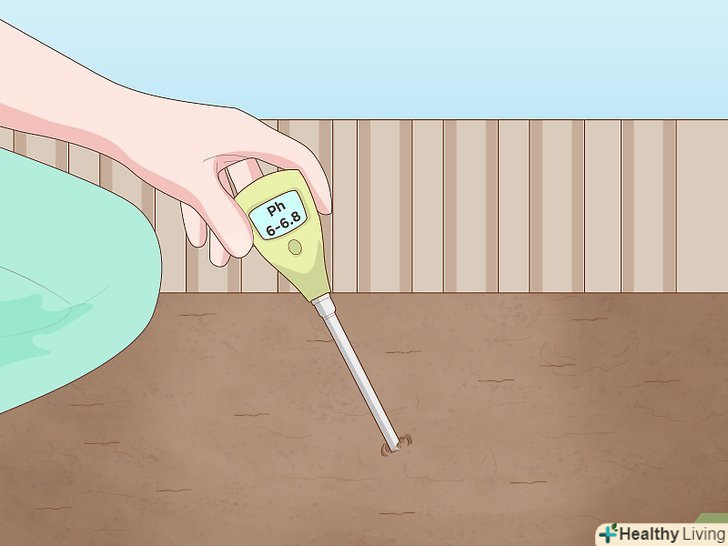 Виберіть місце в саду з добре дренованим грунтом. Погляньте на землю після сильного дощу, щоб перевірити, як добре вона дренує воду. Земля повинні бути вологою, але без глибоких калюж. Якщо в землі дуже багато глини, вона може вбити рослини, так що виберіть інше місце або додайте пісок, щоб поліпшити дренаж глинистого грунту. [5]- Ідеальною вважається суглинний грунт з рівнем pH між 4,5 і 7.