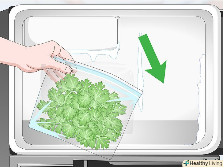 Заморозьте листя і гілочки кінзи. для зберігання великої кількості листя і гілочок кінзи промийте їх і ретельно висушіть. Розправте кінзу і складіть тонким шаром в повторно герметизируемый пакет для заморожування або герметичний контейнер, відповідний для зберігання в морозильній камері. Заморозьте кінзу і використовуйте її протягом року. [7]- Щоб використовувати заморожену кінзу, просто відламайте, скільки вам потрібно, і покладіть решту назад в морозильник.