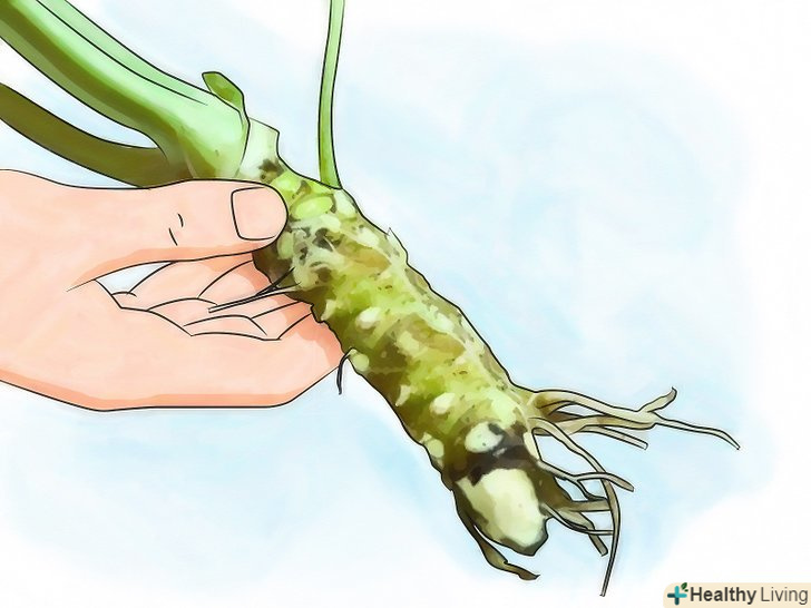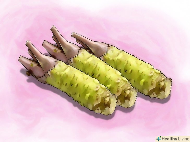 Використовуйте васабі. очистіть корінь васабі і позбудьтеся від листя. Зріжте якомога більше зайвого з кореня, залишивши серцевину. Васабі втратить свою гостроту через кілька годин, тому краще нарізати лише стільки, скільки вам потрібно на один раз.