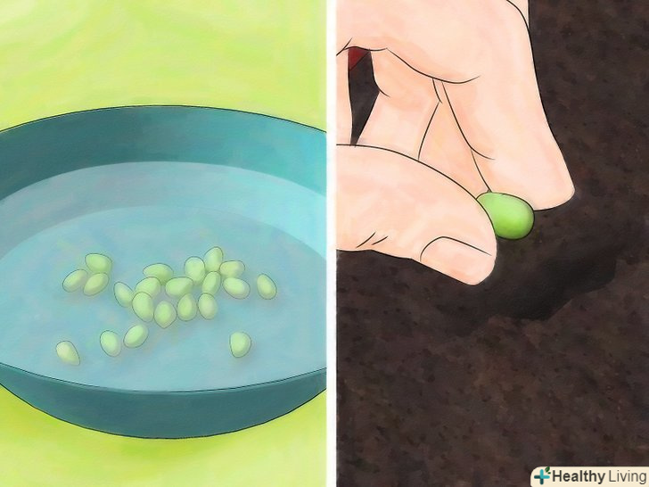 Посадіть насіння. з вечора перед посадкою покладіть насіння в маленьку миску і залийте дистильованою водою. Потримайте насіння у воді ніч. Це дозволить розм'якшити оболонку насіння, і васабі буде простіше пустити коріння. Посадіть насіння на відстані 3-5 сантиметрів один від одного і акуратно втисніть в грунт.