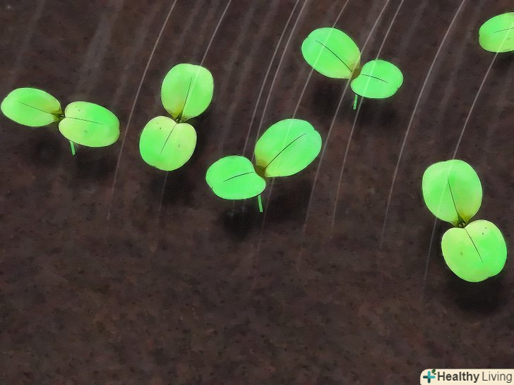 Зволожуйте грунт і насіння. васабі - напівводна рослина, якій потрібна волога. Кожен день зволожуйте грунт і проростки свіжою прохолодною водою, щоб відтворити природні умови, при яких природні водні джерела омивають рослину. Якщо васабі підсохне, він почне в'янути.- Важливо підтримувати потрібний рівень вологи, але не занурювати васабі в воду постійно. Не заливайте рослину відрами води-замість цього збризкуйте його пару раз в день (особливо якщо на вулиці жарко і сухо).