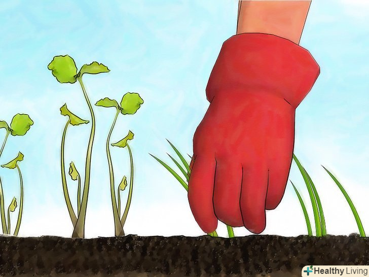 Прополите грядки. Позбавтеся від бур'янів, щоб коріння васабі вистачало місця. Оскільки грунт практично весь час зволожена, в ній швидко заводяться бур'яни. Якщо прополювати грунт кожен день або через день, вам вдасться впоратися з цією проблемою.