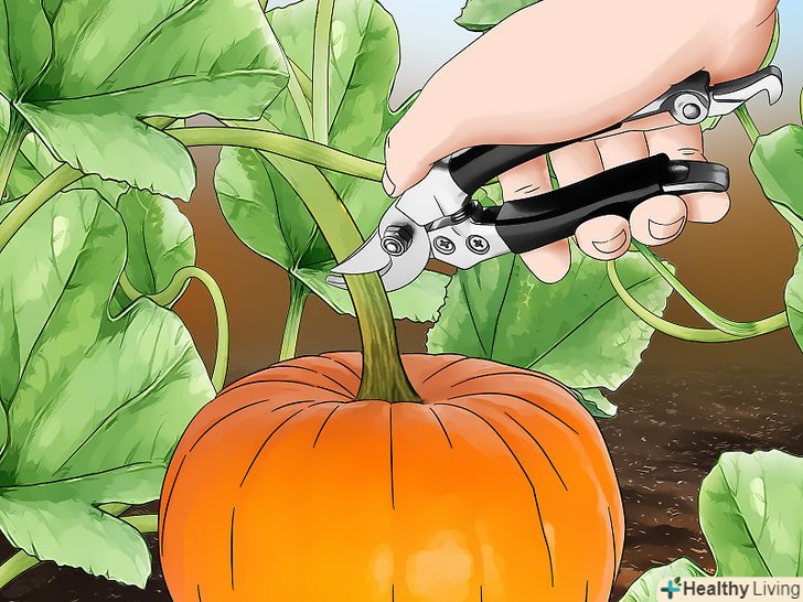 Перевірте, чи готові гарбуза до збору врожаю. вони повинні бути яскраво-оранжевого кольору з твердою поверхнею. Їх стебла повинні бути сухими. У деяких випадках їх пагони можуть почати в'янути самі.
