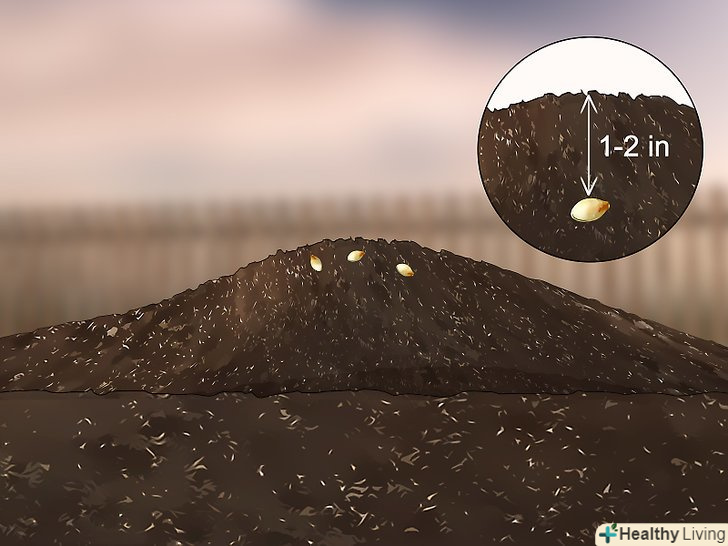 - Щоб дати гарний початок росту ваших гарбузів, заздалегідь гарненько удобрити грунт. Вирийте великі ями, в які ви посадите гарбуза, і наповніть їх компостом за кілька днів до посадки.